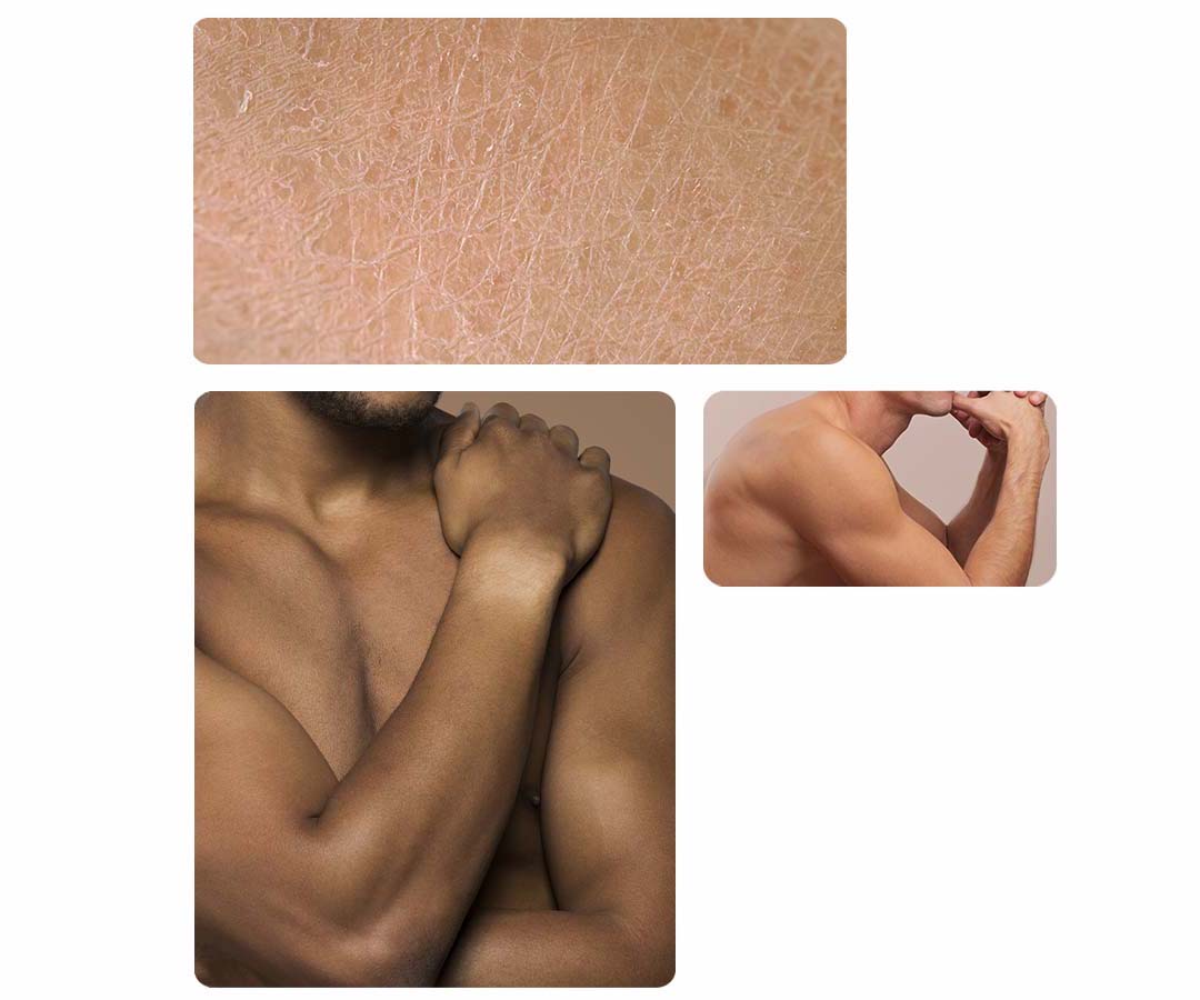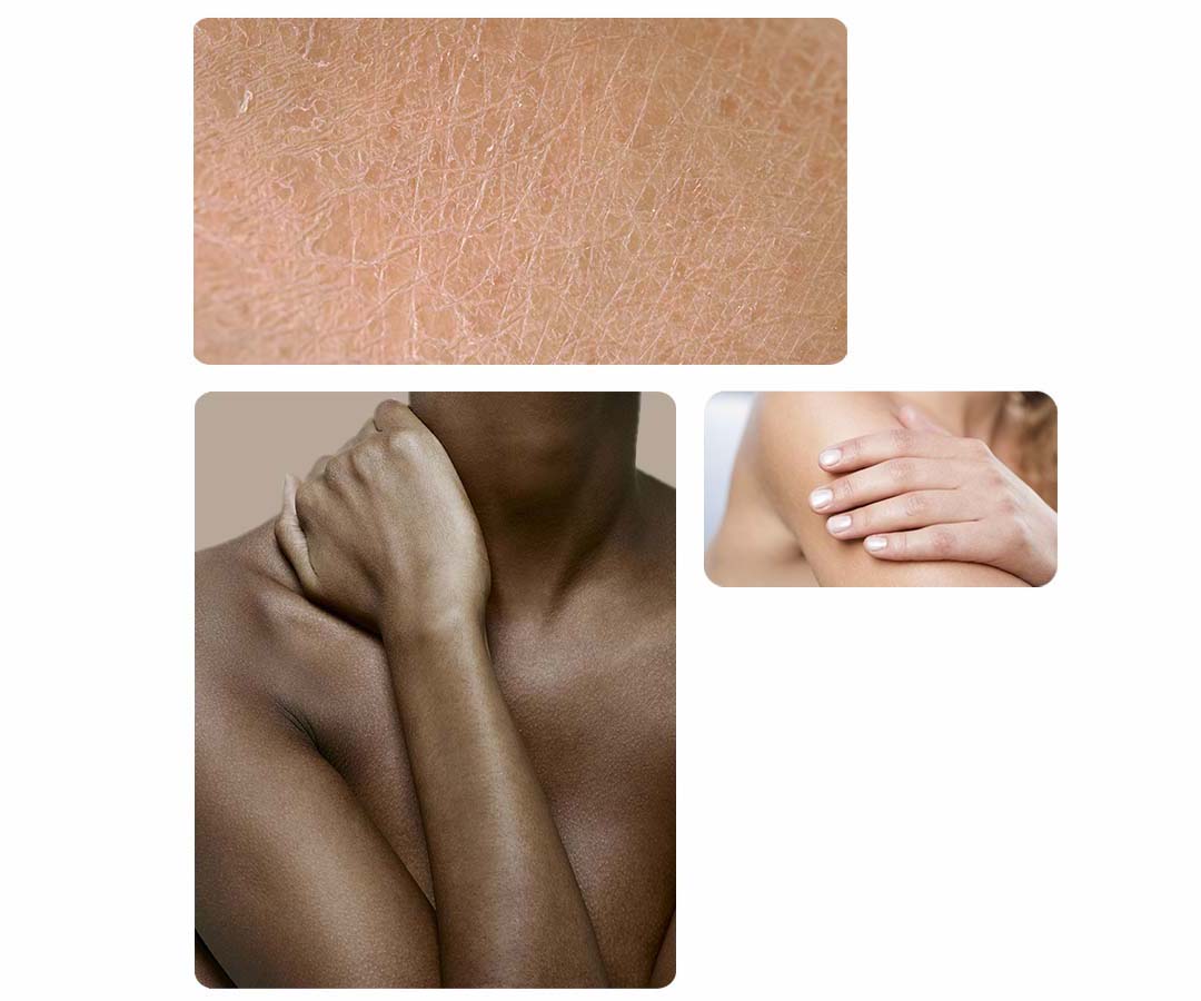 Een droge huid heeft een tekort aan vocht, wat het dof, schilferig en meer vatbaar voor rimpels, huidaandoeningen en allergische reacties kan maken. Huidcomponenten zoals lipiden en eiwitten vormen een barrière om vocht vast te houden, en als deze beschadigd zijn, verdampt het vocht en wordt de huid erg droog.